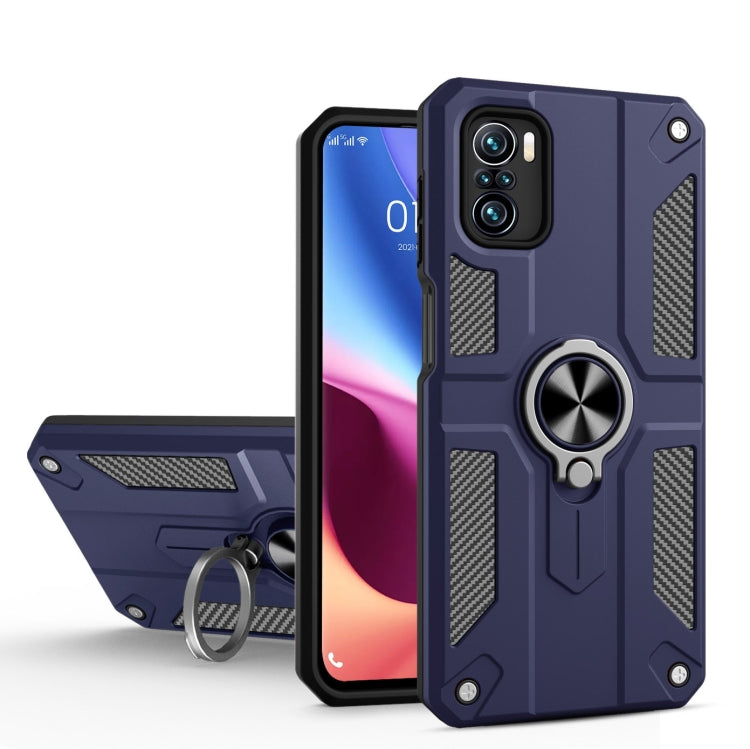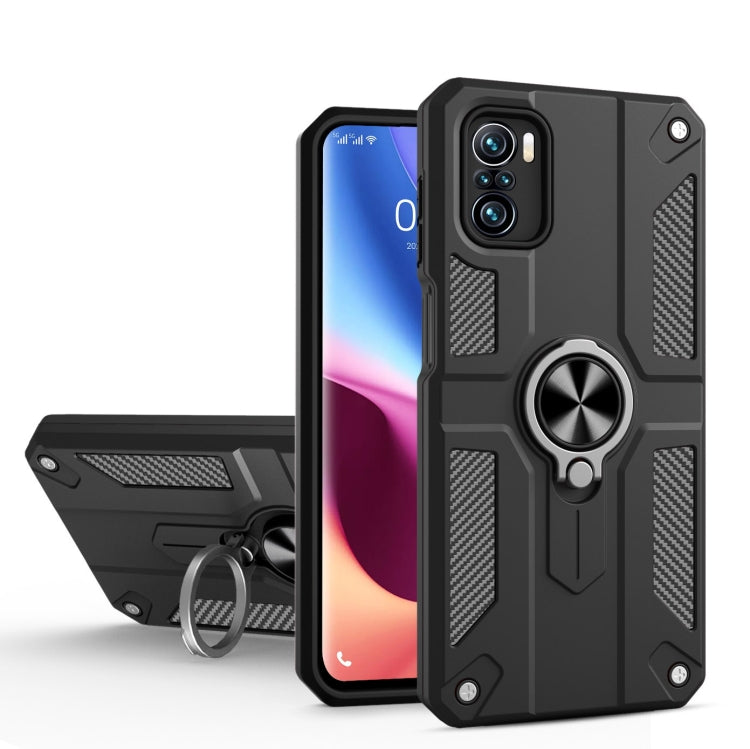 For Xiaomi Poco F3 Carbon Fiber Pattern PC + TPU Protective Case with Ring Holder