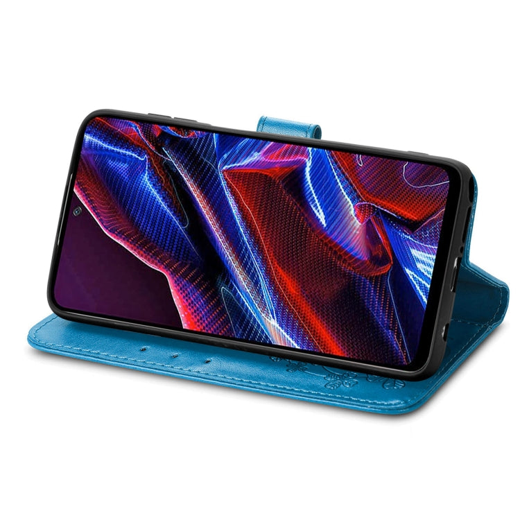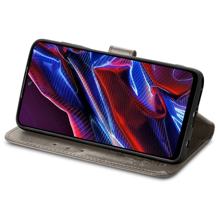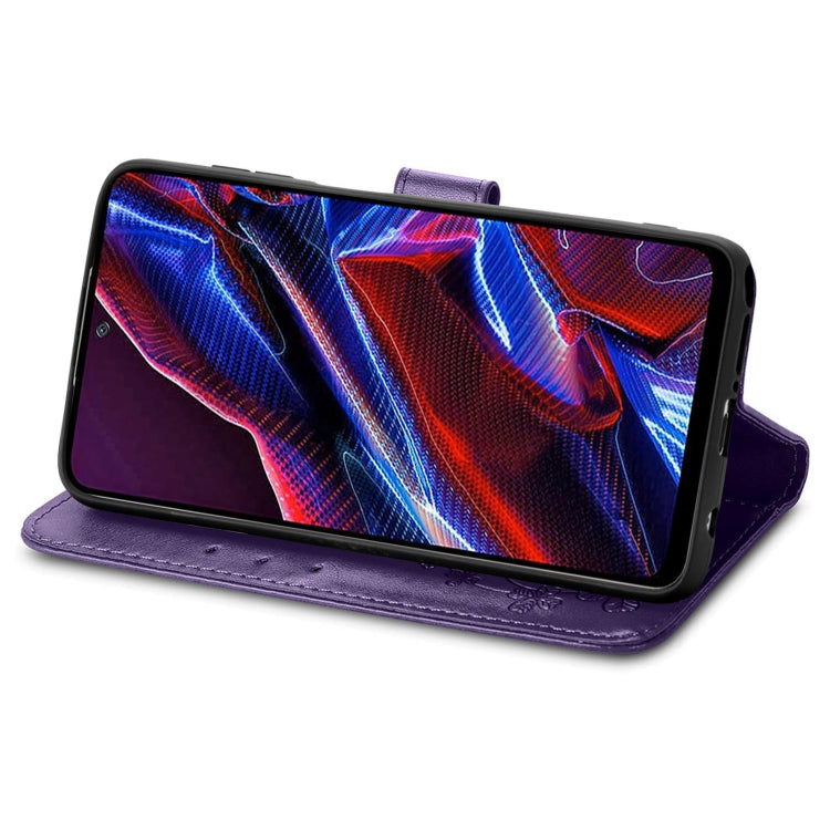 For Xiaomi Poco X5 Four-leaf Clasp Embossed Leather Phone Case
