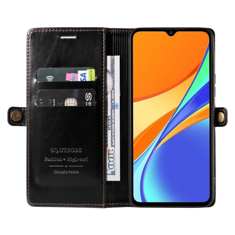 For Xiaomi Redmi 10A / 9C GQUTROBE RFID Blocking Oil Wax Leather Phone Case