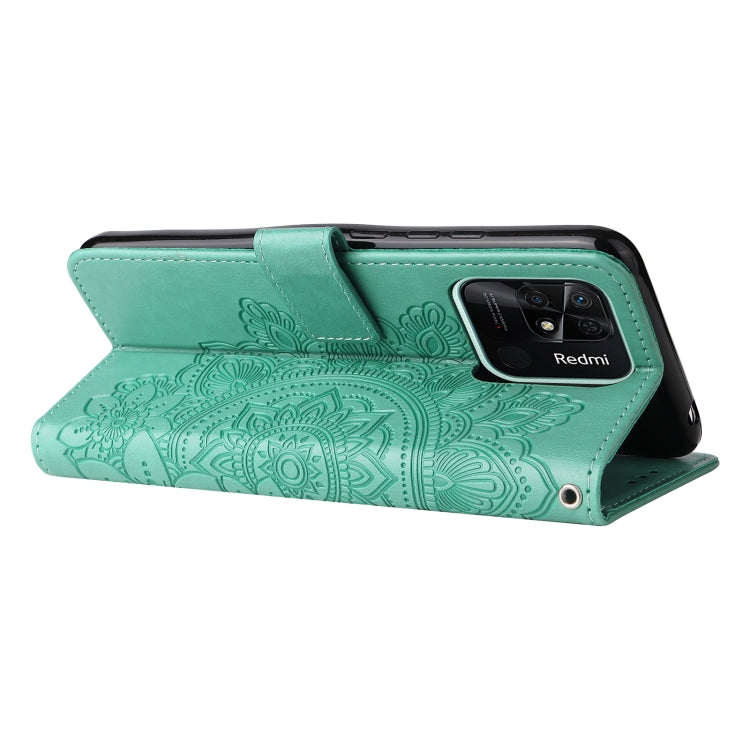 For Xiaomi Redmi 10C 4G/Redmi 10 India 7-petal Flowers Embossed Flip Leather Phone Case