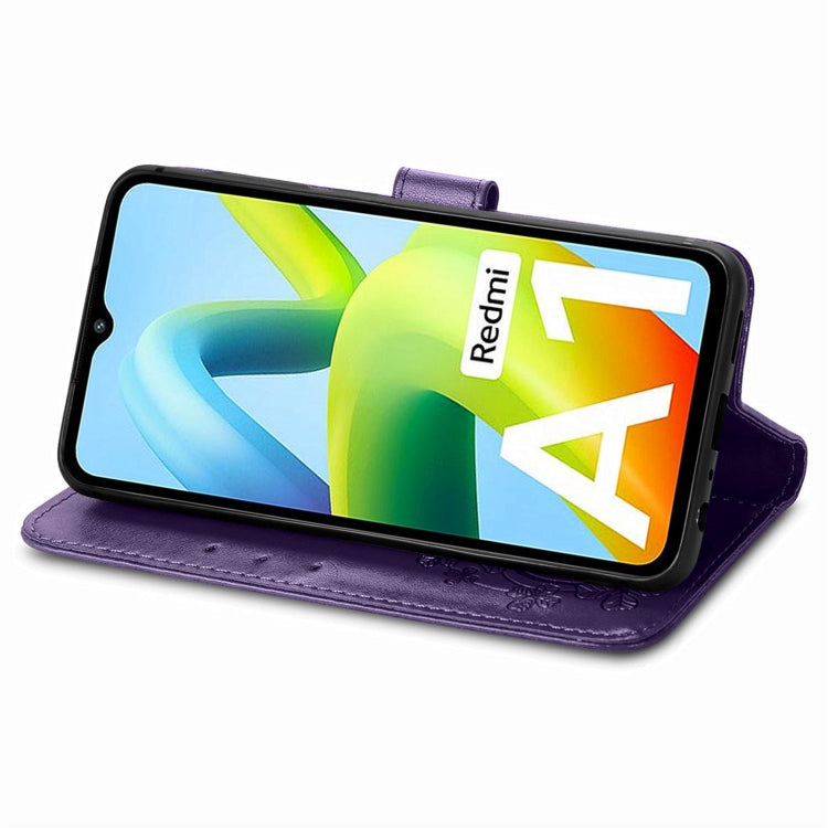 For Xiaomi Redmi A1 Four-leaf Clasp Embossed Buckle Leather Phone Case