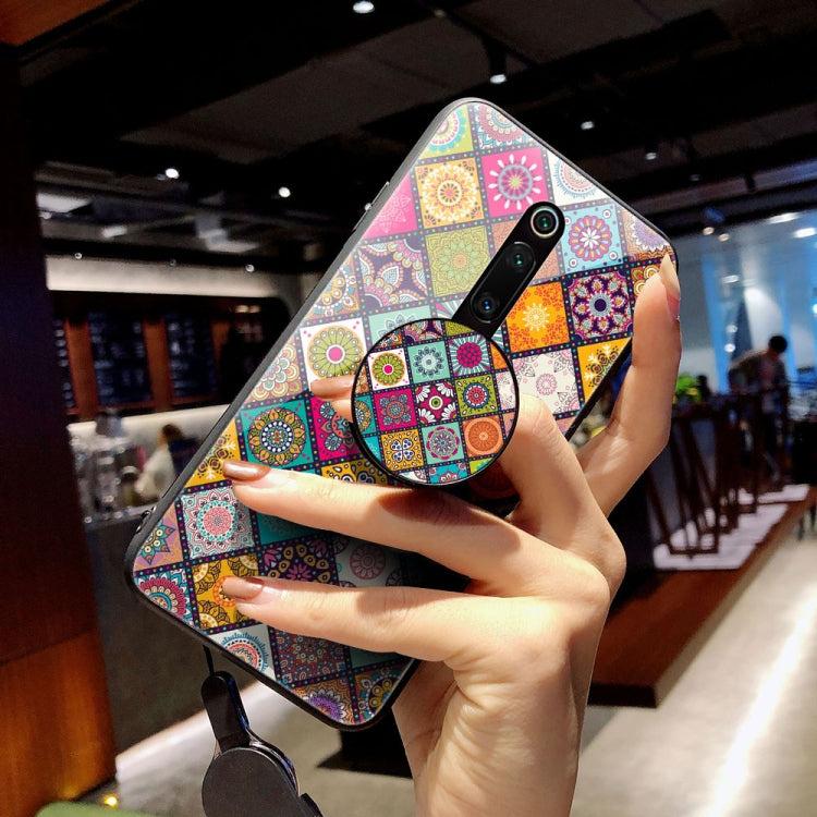 For Xiaomi Redmi K20 / K20 Pro Painted Ethnic Pattern Tempered Glass TPU Shockproof Case with Folding Magnetic Holder & Neck Strap