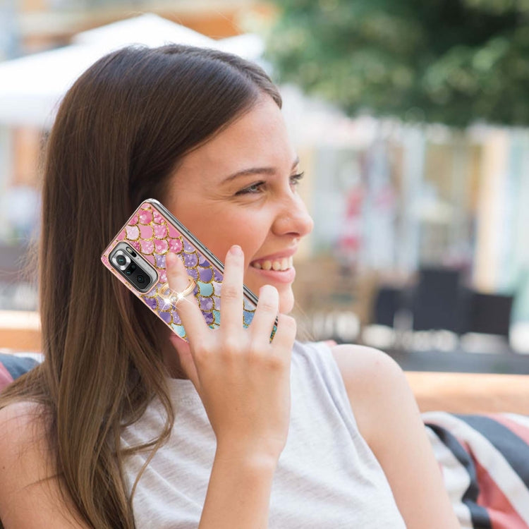 For Xiaomi Redmi Note 10 Pro/ 10 Pro Max Electroplating Pattern IMD TPU Shockproof Case with Rhinestone Ring Holder