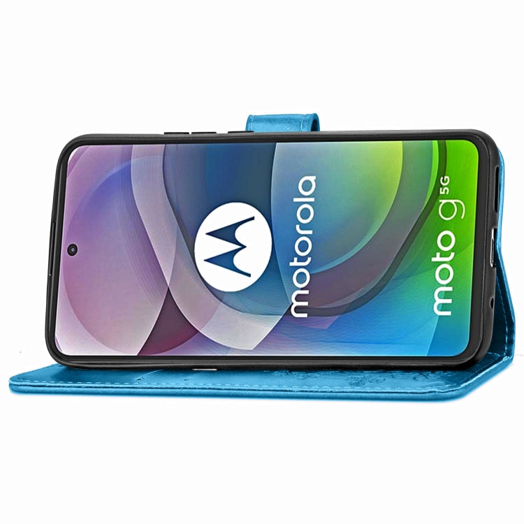 Four-leaf Clasp Embossed Buckle Mobile Phone Protection Leather Case with Lanyard & Card Slot & Wallet & Bracket Function For Motorola Moto G 5G