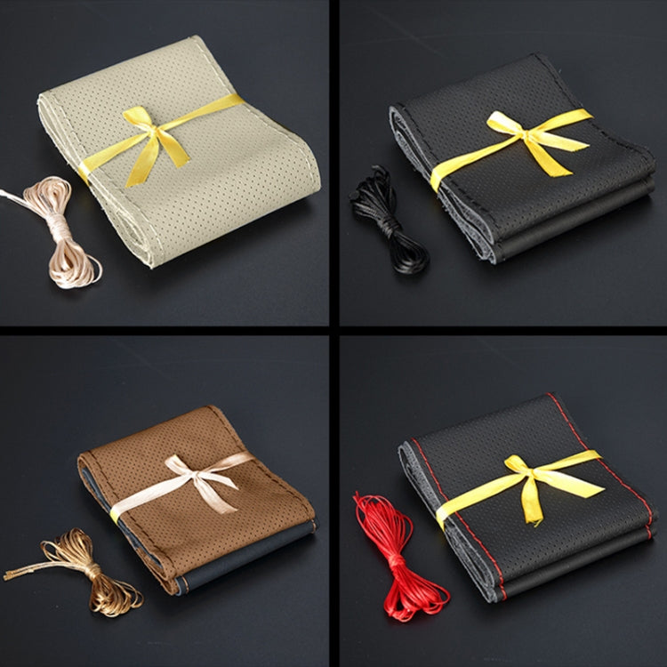 Four Seasons Genuine Leather Hand-stitched Car Adaptation Steering Wheel Cover for 38cm Steering Wheel