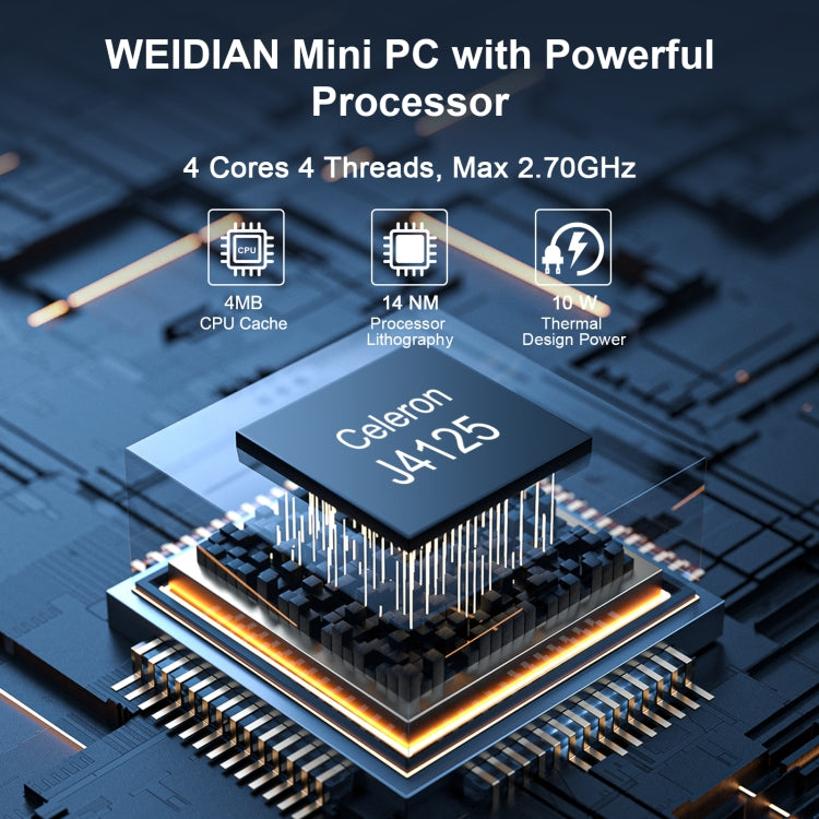 4. CPU: Intel Celeron J4125 (4M cache, base frequency 2.0 GHz up to 2.70 GHz 4 cores 4 threads)