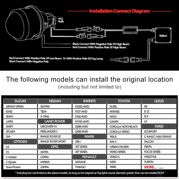 5. It is only suitable for H11 / H8 Xenon bulb.