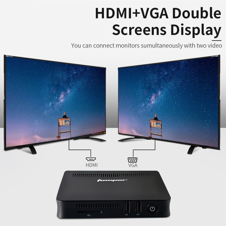 7. Support HDMI + VGA double screen display connection.
