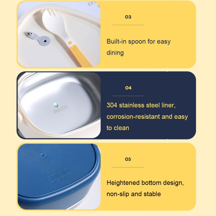 Large Capacity Oval Divided Portable Office Insulation Lunch Box, Specification: 600ml (Stainless Yellow)