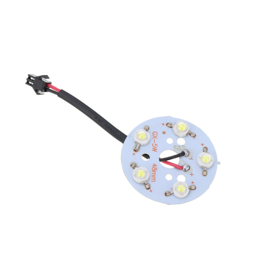 ITEM NAME:LED Ceiling Light Track Light Spotlight Patch Light Source Board, 5 Watt, 5 Description: LED bead plate 5 W tile ceiling spotlights track light source plate white light /LED spotlights panel Product applicable: Ceiling light Spotlight crystal lamp and so on. Product power: 5 watts ;Number of beads: 5 Light board diameter: 48MM Light board material: high heat aluminum plate. Specification: Light board thickness: 1.2mm Voltage:15-18 V Design life: 5 years Lamp beads brightness: 90-100LM / W Light bead color temperature: 6000-6500k (white light) Lamp light effect: 90-100 / W Package Includes: 1 Piece LED light source board Note: Installation Note: The back of the need to be coated with hot glue, longer life..Product applicable: Ceiling light Spotlight crystal lamp and so on. Lamp beads brightness: 90-100LM / W. Light board material: high heat aluminum plate. 1 Piece LED light source board. Lamp light effect: 90-100 / W.