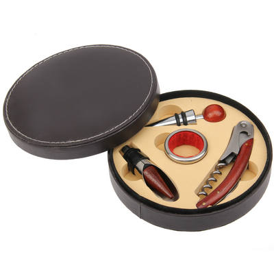 2) Includes 4 piece tool set: Wine Opener, Wine Stopper, Wine Drop Stop and Wine Pourer.