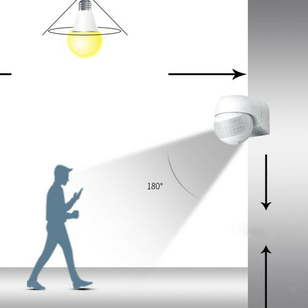 ITEM NAME:Motion Sensor Automatic Induction Type Automatic Switch Safety Surveillance Description: Energy saving and environmental protection, easy installation, detection direction can be adjusted 180° rotation. Focusing on a moving object generates a pyrolytic infrared signal at its temperature. Can effectively prevent fire hazards, no deformation, not easy oxidation. Sensors are suitable for household lamps, indoor and outdoor lamps. The inductive probe to the change of the human body infrared spectrum, switch automatically on the load, people to the light, people off the light, convenient, secure and energy saving. Specification: Materials:FR-ABS Non-transformer,Induction type control switch. Wiring instructions: N-blue (neutral line), L-brown (live line) output,red (sensor output line) blue and brown input power supply,blue and red load (lamp) Rated load: 800W Tungsten lamp 200W Energy saving lamp Working frequency:50/60Hz Operating humidity: