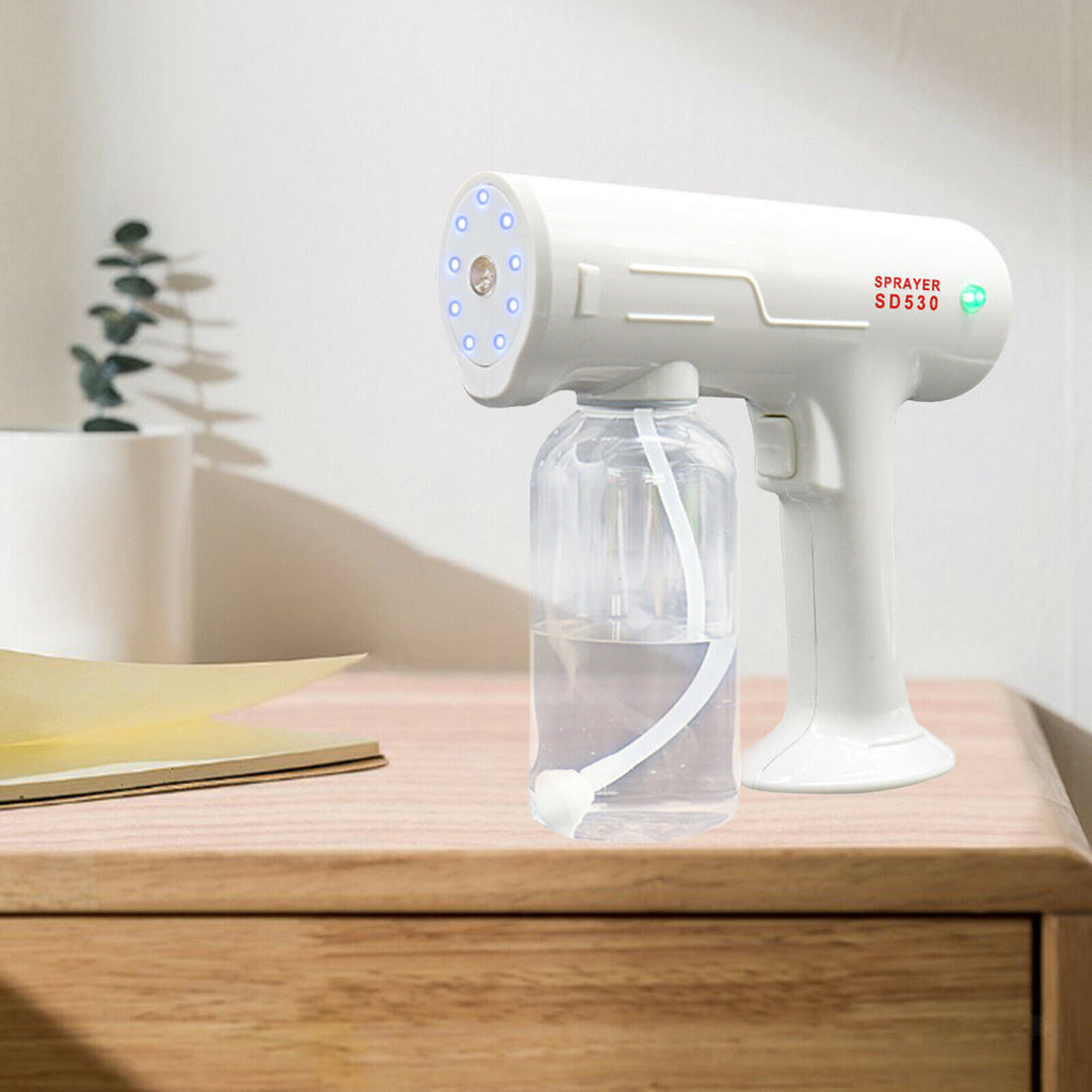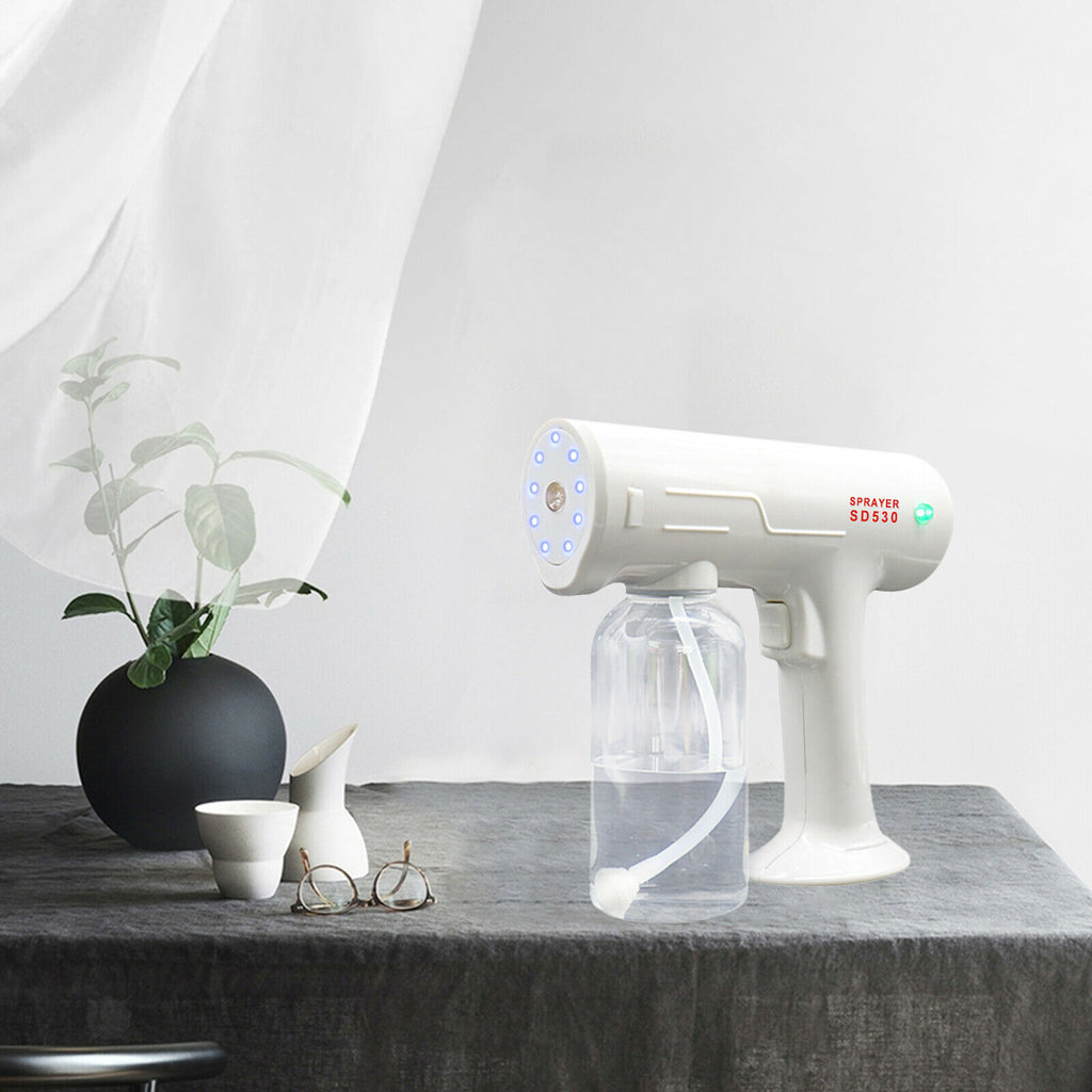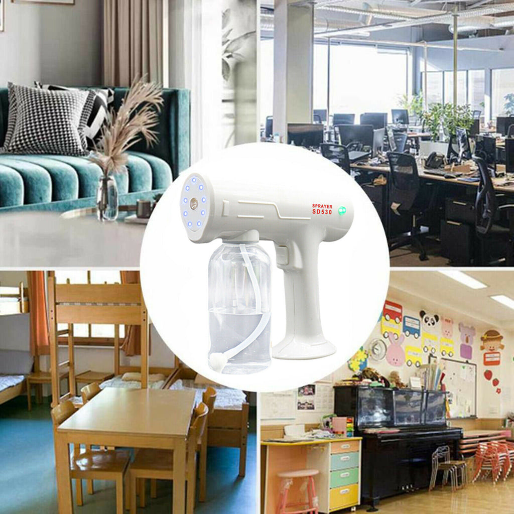 ITEM NAME:Nano Spray Gun Sprayer Public Disinfectant Fogger Portable ULV Stem Gun Description: This 500ml USB Rechargeable Nano Spray Gun ULV Blue Light Sprayer Cordless Automatic Atomizer Electric Fogger for Home, Car, Office, Restaurant High Efficiency: Combines Nano atomization with blue light technology to improve the sterilization function effectively, automatic spray provides large amount of fog for fast spraying Large Capacity: 500ml (18oz) container design can disinfect a larger area one time! Internal conduit is anti-clogging design, built-in liquid filter, more durable. USB Rechargeable: Cordless sprayer.Find many great new & used options and get the best deals for Nano Spray Gun Sprayer Public Disinfectant Fogger Portable ULV Stem Gun at the best online prices at Order2india Shopping! Free shipping for many products!