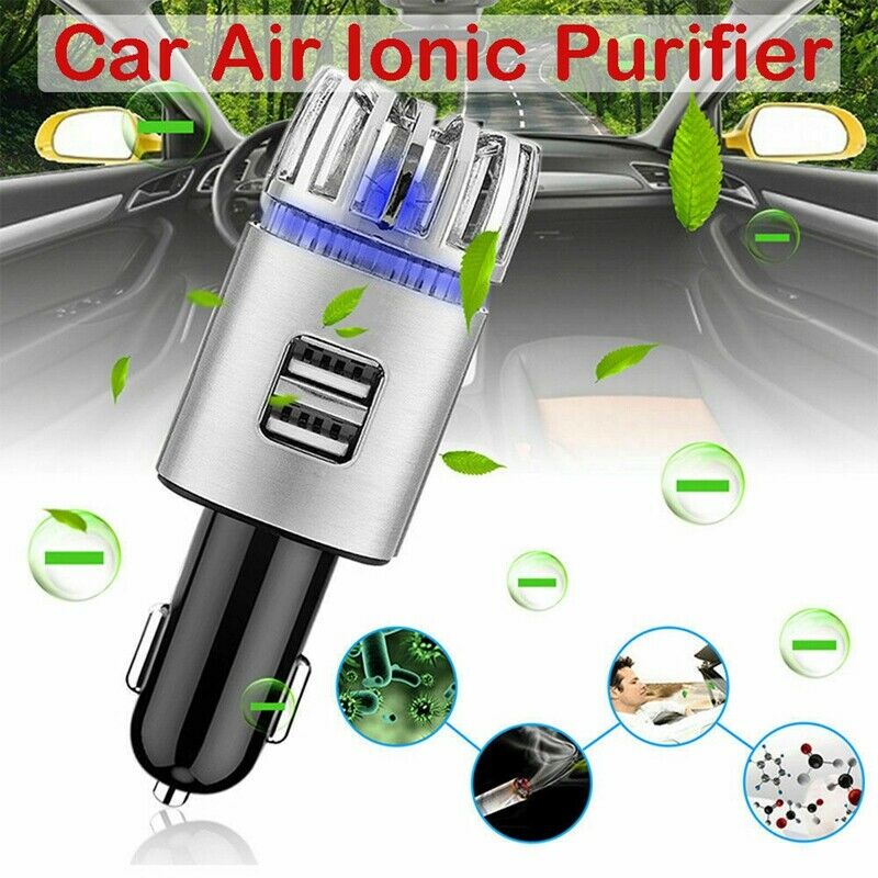 ITEM NAME:New 2 In 1 Car 2 USB Fresh Air Ionic Purifier Oxygen Bar Ozone Ionizer E2I7 New 2 In 1 Car 2 USB Fresh Air Ionic Purifier Oxygen Bar Ozone Ionizer E2I7 1-The new Car Air Purifier is the perfect companion for any car interior, instantly improving the air quality inside your cabin. In addition to removing dust, and pet particulates from the air, it also is effective in neutralizing tobacco smoke, pet and food odors from your car interior. This ionic air purifier is simple to use and filter-free; just plug it in and it starts working immediately. 2-The strongest car interior accessory releases 5.6 million negative ions per cm3 in your car for massive odor-fighting power. 3-Car air purifier produces negative ions that actually improve the air quality by destroying odor-causing particulates from the air, rather than simply cove up the smells like perfume.With a measurable and controllable quantity of negative oxygen ions, 4-this compact unit destroys bad odor effectively getting rid of smoke smell and other stale odors, neutralizes contaminants like mold, bacteria and es purifying the environment helping you breathe easier. Compact and attractive design with blue LED light enhances auto decorating. 5-this Dual 2.1A USB ports are provided for charging your mobile phone, tablet & other devices fast and safely against shorts, surges and other danger. How to Use: Plug it into the 12V car cigarette lighter, and it will start purifying the air with its LED indication light glowing gently. To charge your devices, connect them to the USB port of the air purifier with a USB cable. To stop using the air purifier, unplug it from the socket. For the best air purification performance, do cover the negative ion outlet of the air purifier. Specification: Type:Car Air Purifier Color:Silver+Black Material:Aluminum alloy Anion Concentration:5600,000pcs/cm3 Ozone Concentration:≤0.05ppm Input Voltage:DC 12V Output Voltage:5V 2.1A Ind.Find many great new & used options and get the best deals for New 2 In 1 Car 2 USB Fresh Air Ionic Purifier Oxygen Bar Ozone Ionizer E2I7 at the best online prices at Order2india Shopping! Free shipping for many products!
