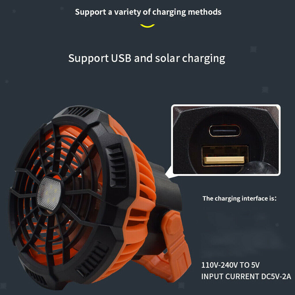 ITEM NAME:Portable Camping Fan with LED Lamp Tent Quiet Rechargeable Remote Control Description: 2 in 1 Camping Lantern Fan: This LED lamp and fan combo can help you stay comfortable in a hot tent using the portable fan. With 3 speed settings and 3 brightness levels of LED lamps. The maximum wind speed can reach per second. Built-in 5200mAh high-capacity battery, the camping fan can work for 5-20 hours in different modes (depending on the wind speed). With the Type-C USB charging port and 2A quick charging function,It only takes 6-8h hours to charge completely full With Remote Control, you can easily control the fan within 15 feet. Built-in foldable hook at the bottom of the outdoor fan. Specification: Size: 128x168MM Battery Type: 18650 Lithium Battery Battery capacity: 3.7V 5200 mA Duration: 3~7 Hours (depends on different speed settings);75 ~ 230 Hours (only lightening mode, depends on different brightness) Charging Time: 6~8 Hours Input current: 200mah-1200mah Output power: 1W-4W LED power: 0.5W-2W Package Includes: 1 x Camping Fan 1 x USB Cable SKU: MNF0022398170028146.Find many great new & used options and get the best deals for Portable Camping Fan with LED Lamp Tent Quiet Rechargeable Remote Control at the best online prices at Order2india Shopping! Free shipping for many products!