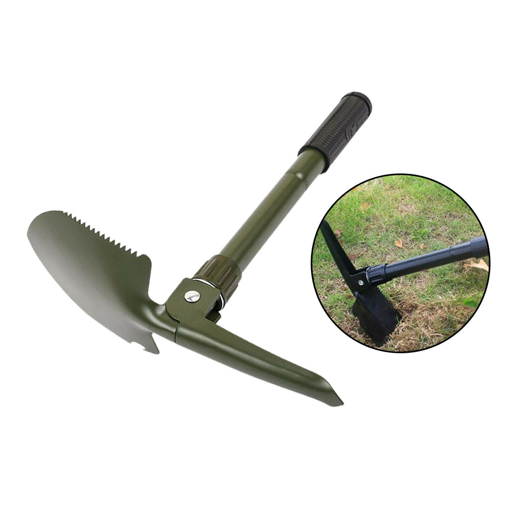 ITEM NAME:Protable Folding Shovel Survival Spade Emergency Garden Camping Fishing Description: Handles of the folding shovel fold twice. It is made to be compact in size when folded so it can easily be packed on a camping or beach trip or carried out to the garden. Comfortable soft rubber grip handle, thickened cutting edge, entrenching shovel can be used either straight or at a 90 degree angle. It comes in a convenient carrying pouch with a loop so the shovel may attach to a belt or backpack. Made of strong tempered forged steel, the shovel measures 40cm long when unfolded, include a serrated on side of the blade so it can be used to saw off lightweight branches. The folding shovel can be used to tires out of dirt if a car becomes stuck, also make mini snow shovels for digging tires out of snow banks. It include a pick tool that can help crack ice or remove rocks. Specification: Trenching shovels are another name for the folding shovel since its pointed type of blade makes it suitable for digging trenches around campsites to collect water away from the campsite. A folding camping shovel can also be used to scoop out rocks and flatten a surface for a tent as well as digging holes for tent stakes. Folding shovels can also be used to create a fire pit. A folding mini shovel is often used in gold panning to scoop and digging through rocks to search for pieces of the valuable mineral. Size Chart: Material: Metal Color: Green Size: 16.34x3.86x1.77 in/6.18x3.86x2.36 in Package Includes: 1 Piece Folding Shovel 1 Piece Bag Note: Please allow slightly difference due to manua l measurement. Color may be slightly different since different monitor. Thanks!.Find many great new & used options and get the best deals for Protable Folding Shovel Survival Spade Emergency Garden Camping Fishing at the best online prices at Order2india Shopping! Free shipping for many products!