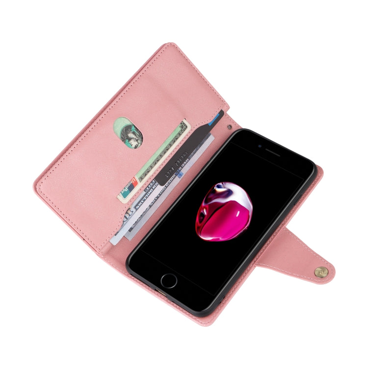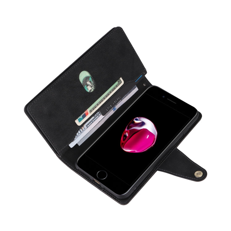 Rivet Buckle 9 Cards Three Fold Leather Phone Case For iPhone 7 Plus/8 Plus