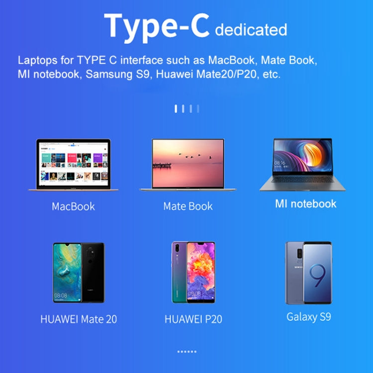 5. Support laptops with Type-C ports, such as Macbook, Mate Book, MI Notebook Air, and smartphones with Type-C ports, such as Samsung S9, Huawei Mate 20/P20, etc.