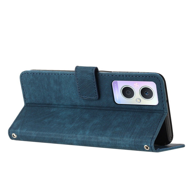 Skin Feel Stripe Pattern Leather Phone Case with Lanyard for OPPO F21 Pro 5G/F21s Pro 5G/Reno7 Z/Reno7 Lite/Reno8 Lite/Reno8 Z 5G/OnePlus Nord N20 5G Global
