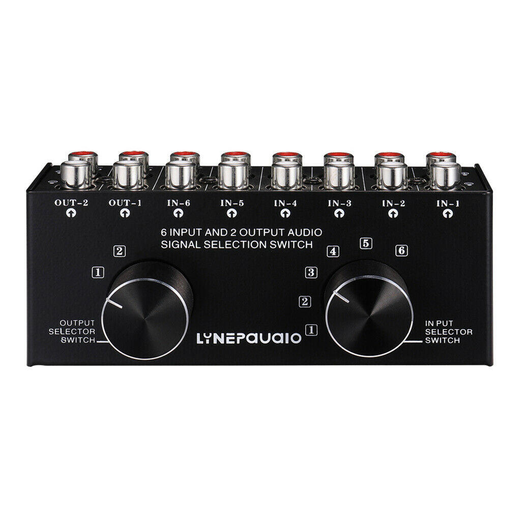 ITEM NAME:Speaker Switch Box Switcher Selector 6Way Port RCA Stereo Audio Video Box Cases Description: 6 input 2 output or 2 output 6 input stereo audio signal selection switcher, with RCA port design. The produce adopts passive design, with direct insertion, and has lossless switched transmission of input and output signals, The product is mainly used to select and switch among a variety of stereo signal input and output through a common set or multiple sets of equipment, such as TV audio, CD player, video game, mobile phone, tablet, computer, record player, need to be output on the amplifier or on active speakers, The 6-channel audio signal selection switcher solves complicated line plug in and plug out, which uniformly connects device input signal sources to the switcher for easily selection. The product uses standard RCA port design for input and output, and uses precise 6-level and 2-level manual switch design for the switcher. Specification: Power supply: passive design, direct insertion Material: all-metal case Input and output impedance: 10KΩ- 50KΩ Frequency response: 20 – 20 kHz Distortion:<0.002% Insertion loss:<0.01dB Signal gain: 0dB Signal to noise ratio S/N: >98dB Input port: standard RCA port Output port: standard RCA port Number of input channels: 6-channel stereo input (reverse 6-channel switched output) Number of output channels: 2-channel stereo output (reverse 2-channel switched input) Control switch: 6-level and 2-level precise manual selection switch Input switching channel: 6 channels Output switching channel: 2 channels Product size: 122x50x38mm/4.8x2x1.3inch Package Includes: 1 Piece Stereo Audio Signal Selection Switcher RCA Port Note: Please allow 0.5-1 inch difference due to manual measurement.(1 inch=2.54cm) Color may be slightly different from the pictures because of different screen and light. Please kindly understand..Find many great new & used options and get the best deals for Speaker Switch Box Switcher Selector 6Way Port RCA Stereo Audio Video Box Cases at the best online prices at Order2india Shopping! Free shipping for many products!