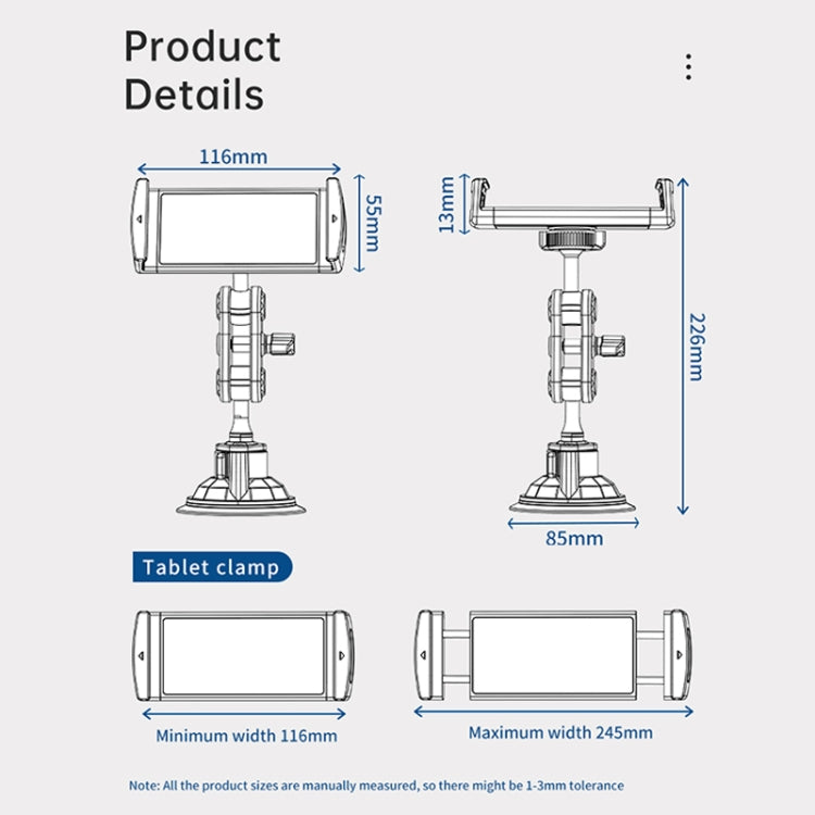UBA-P1B Car Flexible Tablet Suction Cup Clamp Holder with Remote Control
