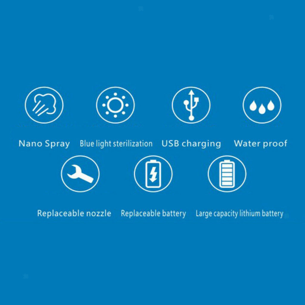 ITEM NAME:USB Rechargeable Nano Sanitizer Sprayer Disinfectant Fogger Machines 500ml Description: Large-capacity 500ml water bottle, manual handle, small and portable. Fast fog, large fog volume, spray distance can reach 1-4 meters, there are 4 kinds nozzles to meet muitiple spray requirements It can be used with various disinfection reagents(not include). Independent research and development of waterproof design, free handstand, will not leak, All 28 gauge bottles are used, if 500ml is not enough, You can replace it with a 2L bottle The sprayer can be used for home, room, office, public area, and clothing disinfection. Compact body allows you to feel comfortable with the design of the handle, easy to carry, can be used in homes and beauty salons. Specification: Model: AK-101 Name: Nano Spray Disinfection Power: 10W Voltage: 5V Material: ABS Size: Approx.26.5x17.5 x 8.5cm/10.4 x 6.9 x 3.3 inch Water Bottle Capacity: 500ML Battery capacity: 4000mAh Charging time: 6 hours Working time: 7-8 Hours Continuous spray Distance: 1-4 Meters Weight: 410g.Find many great new & used options and get the best deals for USB Rechargeable Nano Sanitizer Sprayer Disinfectant Fogger Machines 500ml at the best online prices at Order2india Shopping! Free shipping for many products!