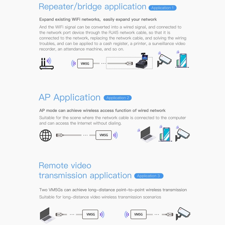 3. Support WiFi intelligent bridge relay, which can realize wireless to wired and wired to wireless.